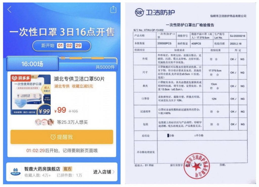 拼多多上架专供湖北平价口罩 每天 300 万只均价不到 2 元